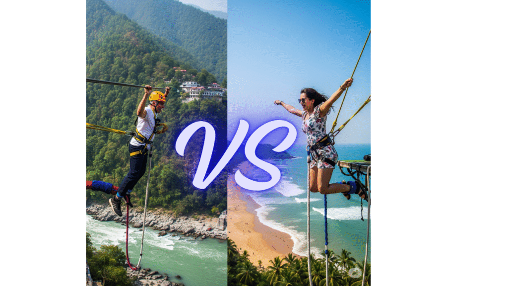 Experience the ultimate thrill! Compare bungee jumping in Rishikesh vs Goa — heights, safety, cost & more in this adrenaline-packed showdown.